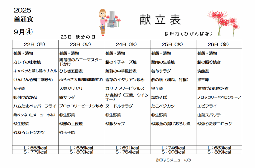 今週のランチメニュー(普通食)【2025.9.22(月)~2025.9.26(金)】