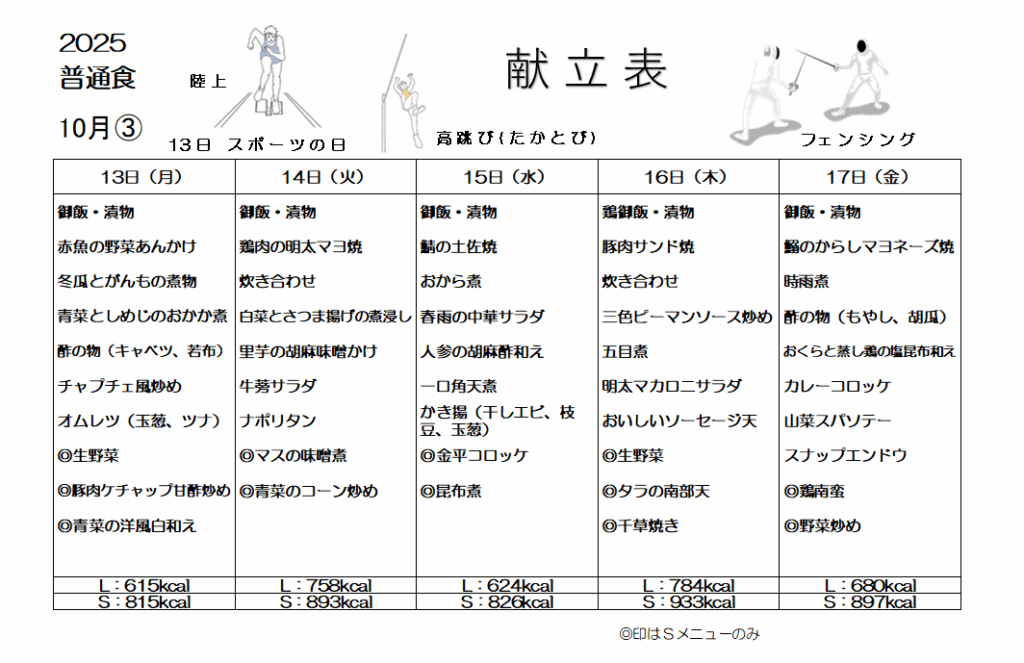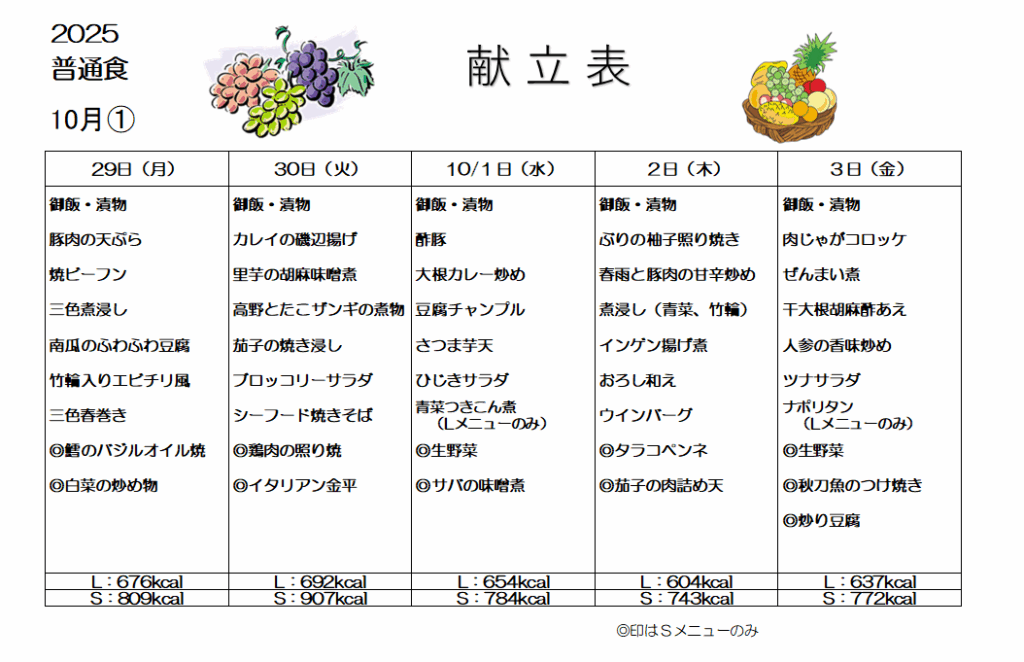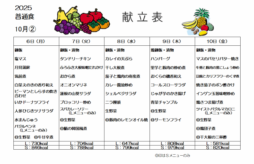 今週のランチメニュー(普通食)【2025.10.6(月)~2025.10.10(金)】