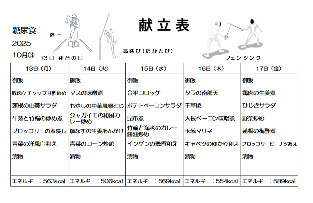 今週のランチメニュー(糖尿食)【2025.10.13(月)~2025.10.17(金)】