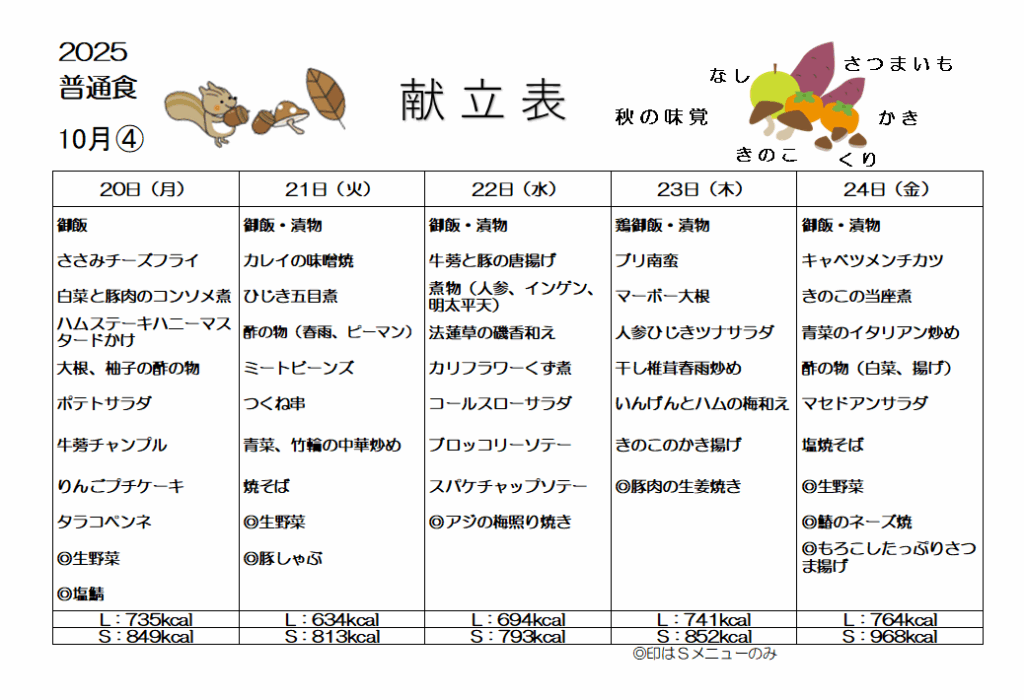 今週のランチメニュー(普通食)【2025.10.20(月)~2025.10.24(金)】