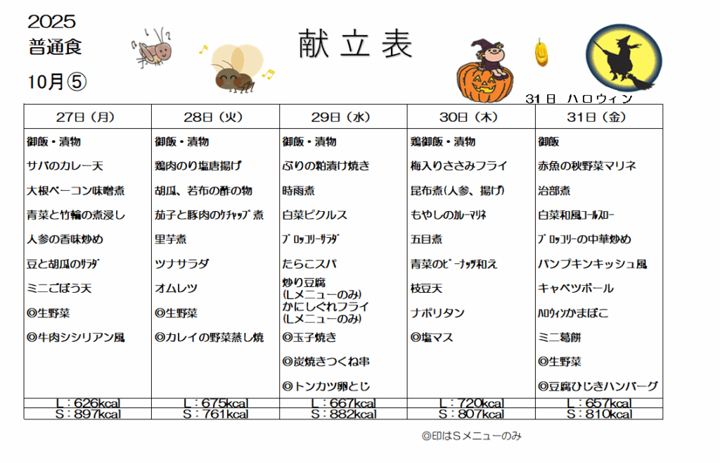 今週のランチメニュー(普通食)【2025.10.27(月)~2025.10.31(金)】
