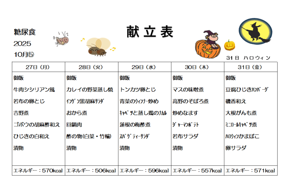 今週のランチメニュー(糖尿食)【2025.10.27(月)~2025.10.31(金)】